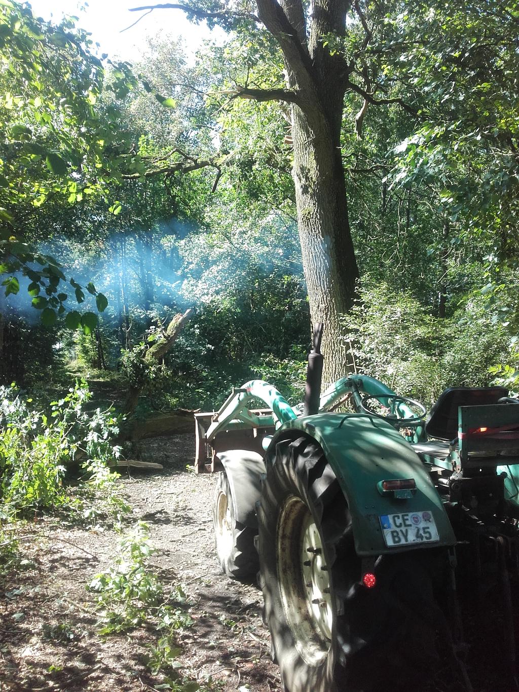 22 Eichen sind gefallen und im Nadelholz hat der Harvester bereits wieder Arbeit für 2 volle Tage . Schöner Mist, gut das der Kleine beim aufräumen hilft , übrigens das erste mal das ich mich über den rauchenden Motor freue, denn Bremsen sind dadurch auf Abstand gehalten.