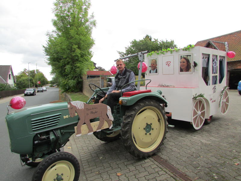 Moin , eine coole Idee! So kommst Du sogar während einer Hochzeitsfeier zum Treckerfahren:-) ........und der Käfer mit dem Celler Kennzeichen ist für ganz schlechtes Wetter gedacht?
