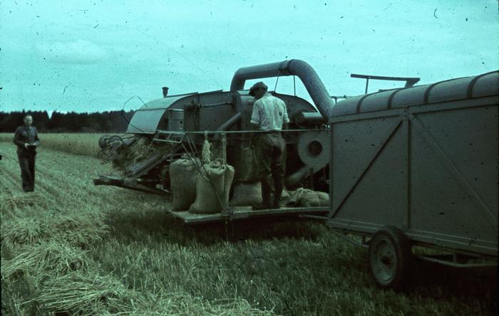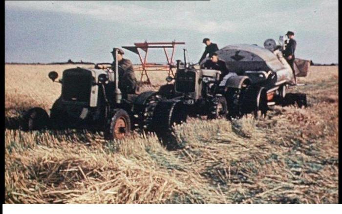 der Traktor im oberen Bild ist augenscheinlich einen MAN AS 250;  falls der Claas Mähdrescher Zapfwellegetrieben war (?) mussten sicher die Motor-Seitendeckel abgenommen werden um maximal Kühlung des Motors zu erreichen. Der Körnertank hinten (Eigenbau ?) gefällt mir - wie wurde eine solche Einrichtung geleert ?  Am unteren Bild ist der Claas mit Raupen, wie die "Hülle"-Ansteckraupen, ausgestattet.  Wurde dieses Gespann besonders für moorige, schwierige Felder eingesetzt ?